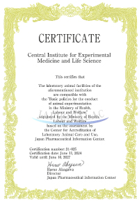 In addition, CIEM took the lead in achieving animal experimentation based on the 3Rs by accurate assessments of pain categories in animal experiments and by publishing a classification of severity of pain in experimental treatment prior to other research institutions.